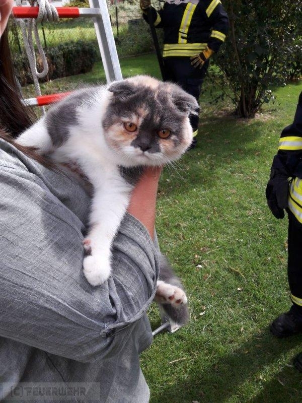 Katze über 3-Teilige Schiebleiter gerettet.