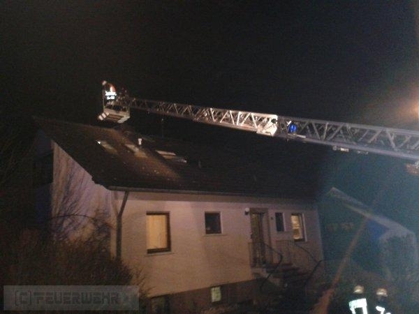Bereitstellung der Drehleiter bei einem Wohnhausbrand in Kirberg