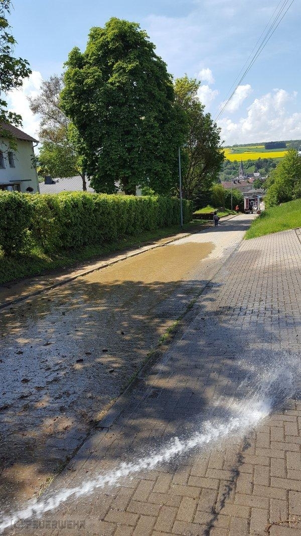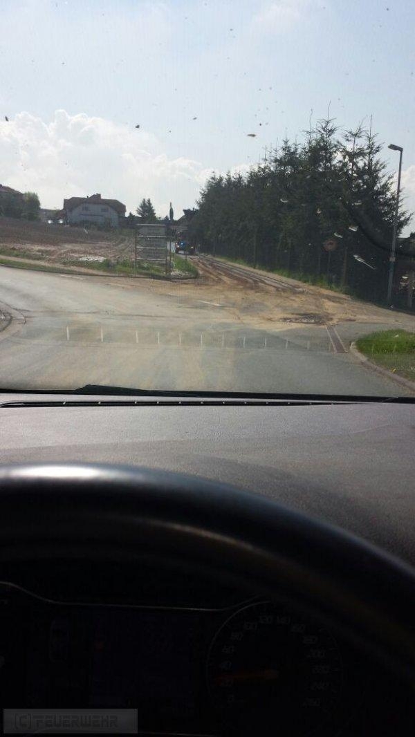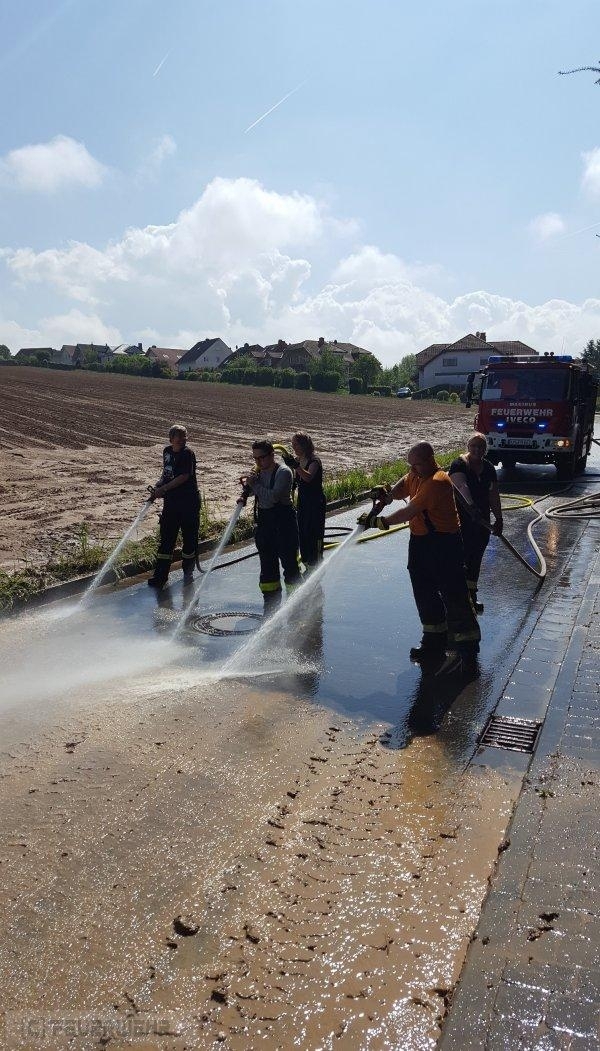Münsterer Straße die Fahrbahn durch Schlammmassen verschmutzt.