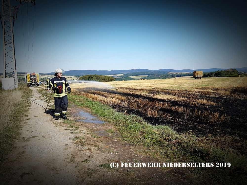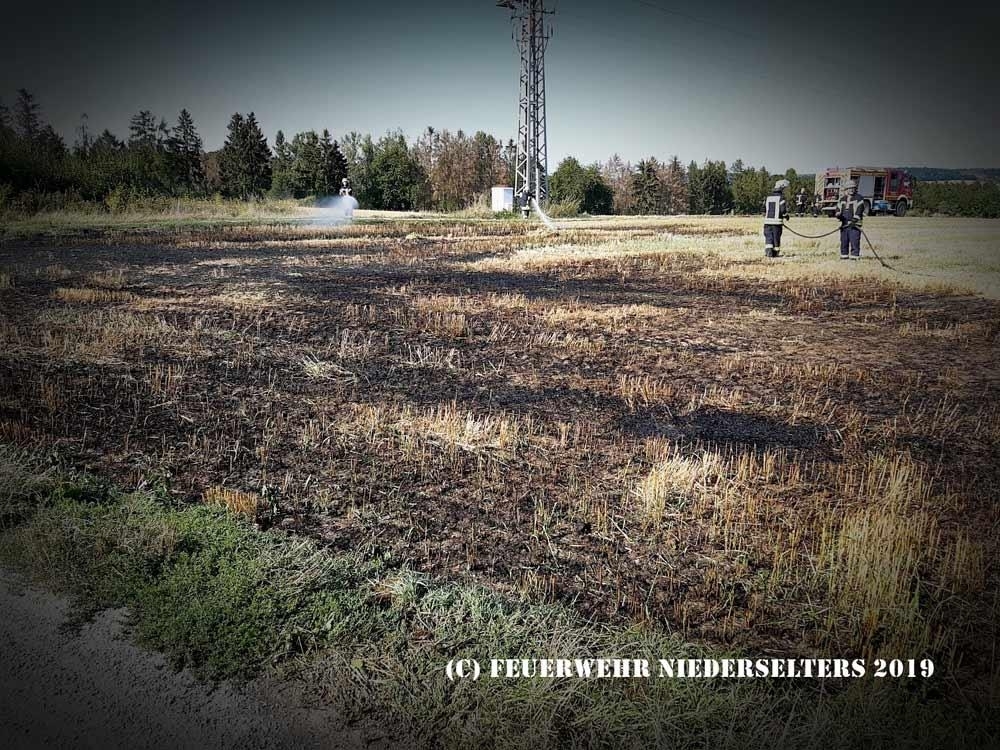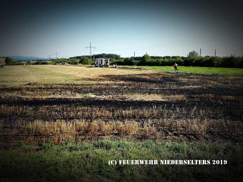 Vorgefundener Flächenbrand eines Stoppelfeldes, Höhe ICE Trasse, ca 1600² betroffen.