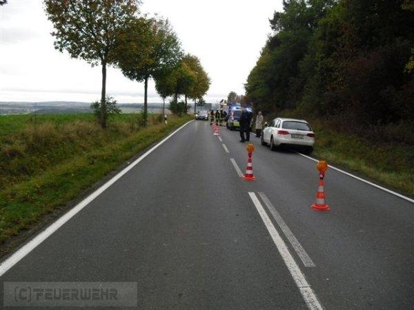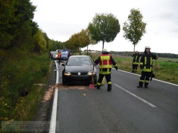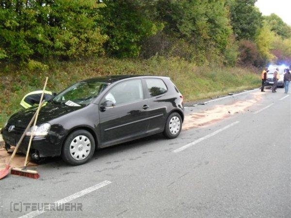 2 stark beschädigte Fahrzeuge stehen auf der Strasse, Betriebsstoffe laufen aus. Betriebsstoffe wurden gebunden und die Warnbeschilderung wurde aufgestellt.