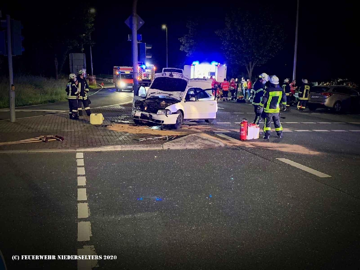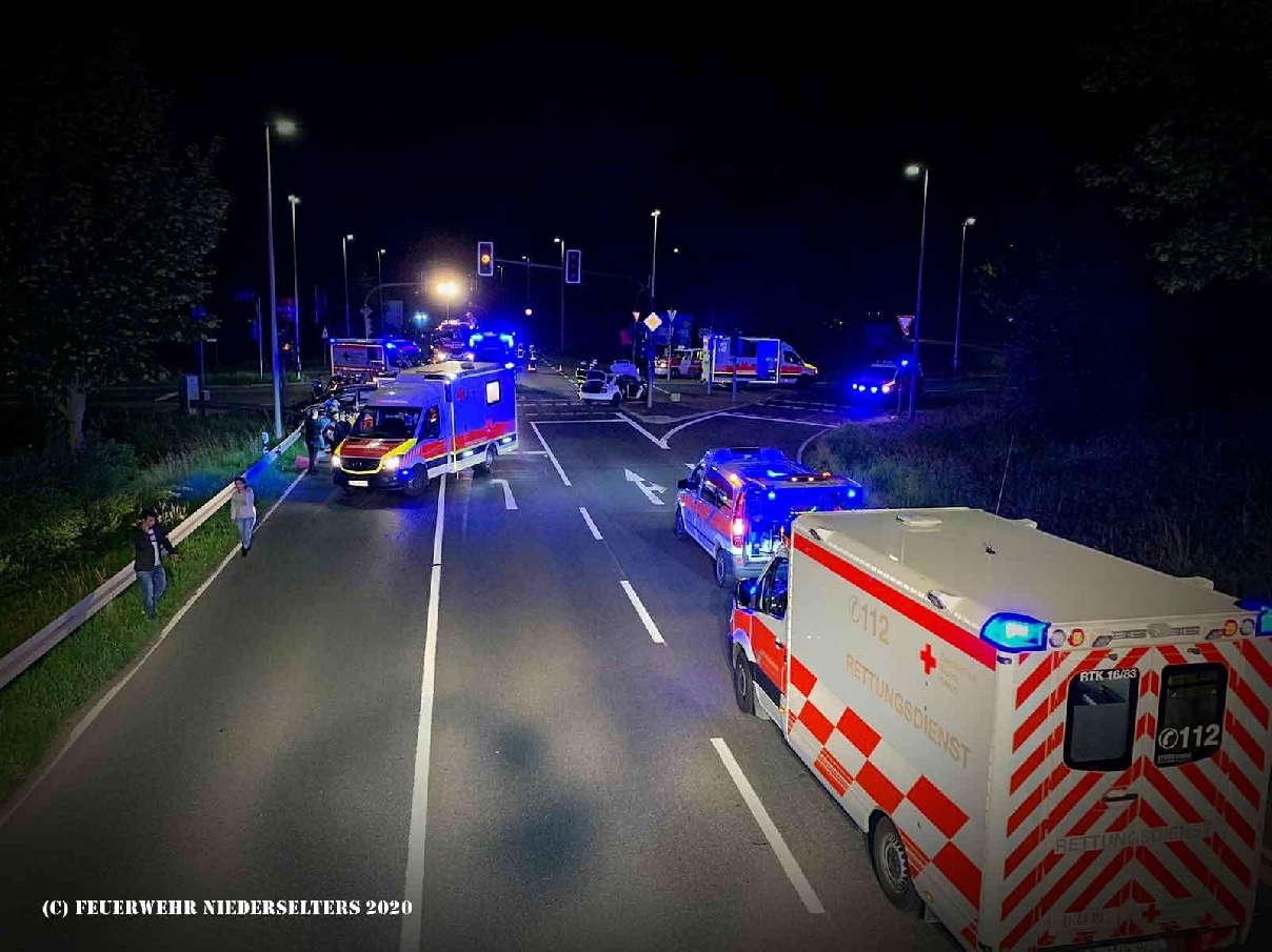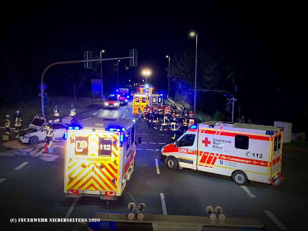 Am späten Freitagabend, gegen 23.30 Uhr, kam es in Niederselters zu einem schweren Verkehrsunfall. Eine 24-jährige aus Hadamar fuhr mit ihrem Kia von der Straße Am Schwimmbad auf die B 8, ohne vermutlich auf den dortigen Verkehr zu achten. Ein 18-jähriger aus Bad Camberg, welcher die B 8 von Limburg nach Bad Camberg befuhr, konnte nicht mehr rechtzeitig bremsen und fuhr in den Kia. Die Fahrerin des Kia und ein Mitfahrer des 18-jährigen Audi-Fahrers mussten schwerverletzt in umliegende Krankenhäuser eingeliefert werden. Der Fahrer des Audi und ein weiterer Mitfahrer wurden leichtverletzt, wobei der Fahrer des Audi in einem Krankenhaus behandelt werden musste. Es entstand ein Sachschaden von ca. 22.000 Euro.