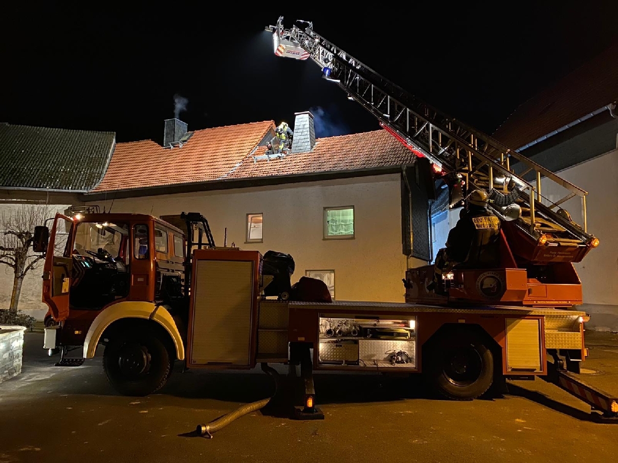 Bestätigter Kaminbrand mit sichtbaren Funkenflug. Der Dachbereich wurde über die Drehleiter ausgeleuchtet. Der Kamin wurde durch die Feuerwerwehr Weyer vom Dach aus kontrolliert und gekehrt.