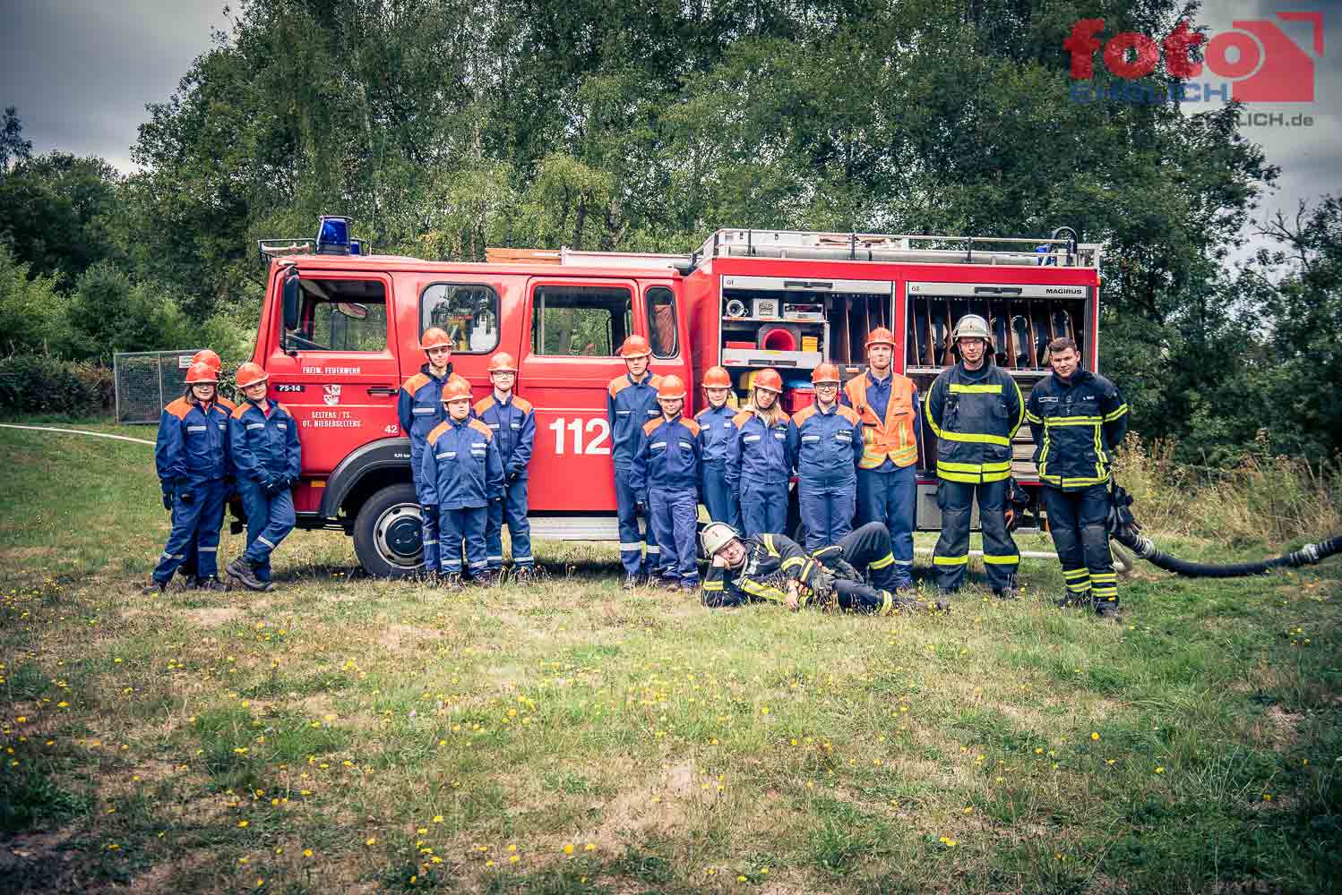 Mit Tatütata durch’s Dorf brausen, das ist nicht das, was die Kids der Jugendfeuerwehren der Gemeinde Selters wollen! Sie wollen Spaß in einer tollen Gemeinschaft, moderne Technik und Know-How gepaart mit historischem Wissen und die Kameradschaft auch mit der Einsatzabteilung. Denn die Einsatzabteilungen der Gemeinde Selters begleiteten die 18 Kinder der Jugendfeuerwehr über die Zeit der 24-Stundenübung und hatten sich einige tolle Übungen ausgedacht. Gleich nach dem Stubenbezug im Feuerwehrgerätehaus in Niederselters ging’s zur ersten Übung, einer Hilfeleistung, da mehrere Personen nach einem Unfall in einem Baustellenbereich gesucht wurde. Damit die Gerätschaften für den nächsten Einsatz wieder parat sind, lernten die Kinder viel über den sorgsamen Umgang mit dem ihnen überlassenen Material. Theoretisch ging es im Unterricht weiter mit dem Thema „gefährliche Stoffe und Güter“, bevor die Alarmübung vor dem gemeinsamen Abendessen alles von den Kindern forderte, da die Turnhalle „brannte“ und mehre Personen als vermisst galten. Zu nachtschlafender Zeit sorgte dann ein gelber Kanister für Aufregung, der von einem Pritschenwagen in einem Vorgarten gelandet war. Hierbei konnten die Kinder die am Nachmittag erlernten Kenntnisse direkt umsetzen, die auch den Umwelt- und Arbeitsschutz berücksichtigten, der bei solchen Einsätzen eine große Rolle spielt. Von der Absperrung, dem Erkennen und Bestimmen des Stoffes und seines Gefahrenpotentials mittels der Gefahrstoffkennzeichnung bis zum Ergreifen entsprechender Sicherungs- und Bergungsmaßnahmen waren die Kinder vielfältig gefordert und hochwachsam. Die Einrichtung des Dekontaminationsplatzes rundete die Übung ab, so konnten die zwei eingesetzten Trupps unter Atemschutz nach dem Einsatz dekontaminiert und damit möglicherweise gefährliche anhaftende Stoffe abgewaschen werden. Ein brennender Mülleimer weckte die Kinder kurz vor dem Frühstück, bevor es dann zu weiteren feuerwehrtechnischen Ausbildungen ging. Die gemeinsame Abschlussübung aller an diesem Wochenende teilnehmenden Jugendfeuerwehren aus Münster, Eisenbach, Niederselters und Haintchen trafen sich im Bereitstellungsraum am Ortsschild Haintchens. Doch noch bevor sie die herrliche Fernsicht über den Taunus genießen konnten, wurden sie zum Einsatzort abberufen. Dort kam es zu im angenommenen Szenario zu einem Brand der im Wald gelegenen Grillhütte, bei der sich zusätzlich wohl verletzte Personen im Schock in das angrenzende Waldgebiet geflüchtet haben sollten. Die Aufgabenstellung war anspruchsvoll: Die erste Brandbekämpfung konnte mit Tanklöschfahrzeugen aus der Nähe erfolgen, bevor die Jugendfeuerwehr Niederselters mit der Herstellung einer „Wasserversorgung lange Wegstrecke“ beauftragt wurde. Die Wasserentnahme erfolgte aus unterhalb gelegenen Löschteich und die Wasserzuführung über eine Strecke von rund 200m. Gerade im Waldgebiet gilt es, die Natur zu schützen und der weiteren Ausbreitung durch besonnenes Handeln und die taktische Vorgehensweise Einhalt zu gebieten. Bürgermeister Bernd Hartmann und viele interessierte Übungsbeobachter der Feuerwehren waren absolut begeistert, wie routiniert die Abläufe bei der Abschlussübung zu beobachten waren. Die vermissten Personen konnten im Waldgebiet gerettet und dem „Rettungsdienst“ zur weiteren Versorgung zugeführt werden. Der Brand der Grillhütte war schnell unter Kontrolle und das angrenzende Waldgebiet mit hohen Tannen vor einer Entzündung durch Funkenflug geschützt werden. Mehr Informationen zur Arbeit der Wehr, die gerade aktuell Spenden sammelt für ein neues -dringend benötigtes – Fahrzeug für die Jugendarbeit: www.Feuerwehr-Niederselters.de ( Peter Ehrlich / FOTO-EHRLICH.de ).
